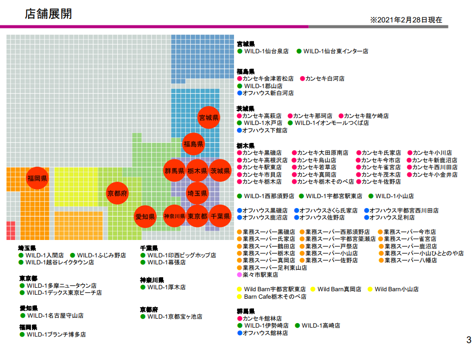 2003年8月に業務用食品スーパーの1号店として「業務スーパー佐野店」を開店して、現在栃木県内で21店舗の業務スーパーを出品しています。