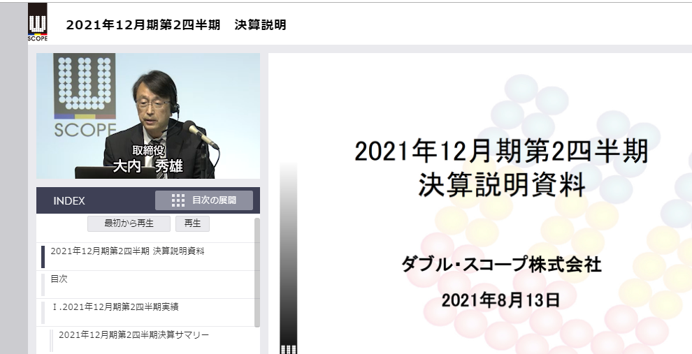 2021年8月13日実施のダブルスコープ2021年12月期第2四半期決算説明会